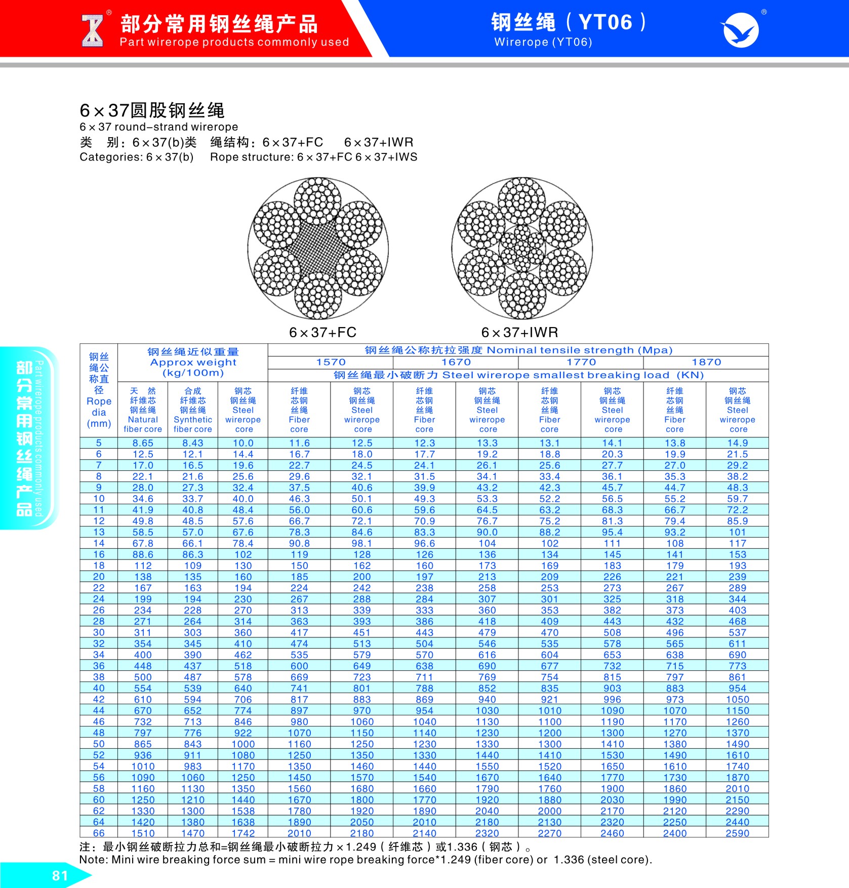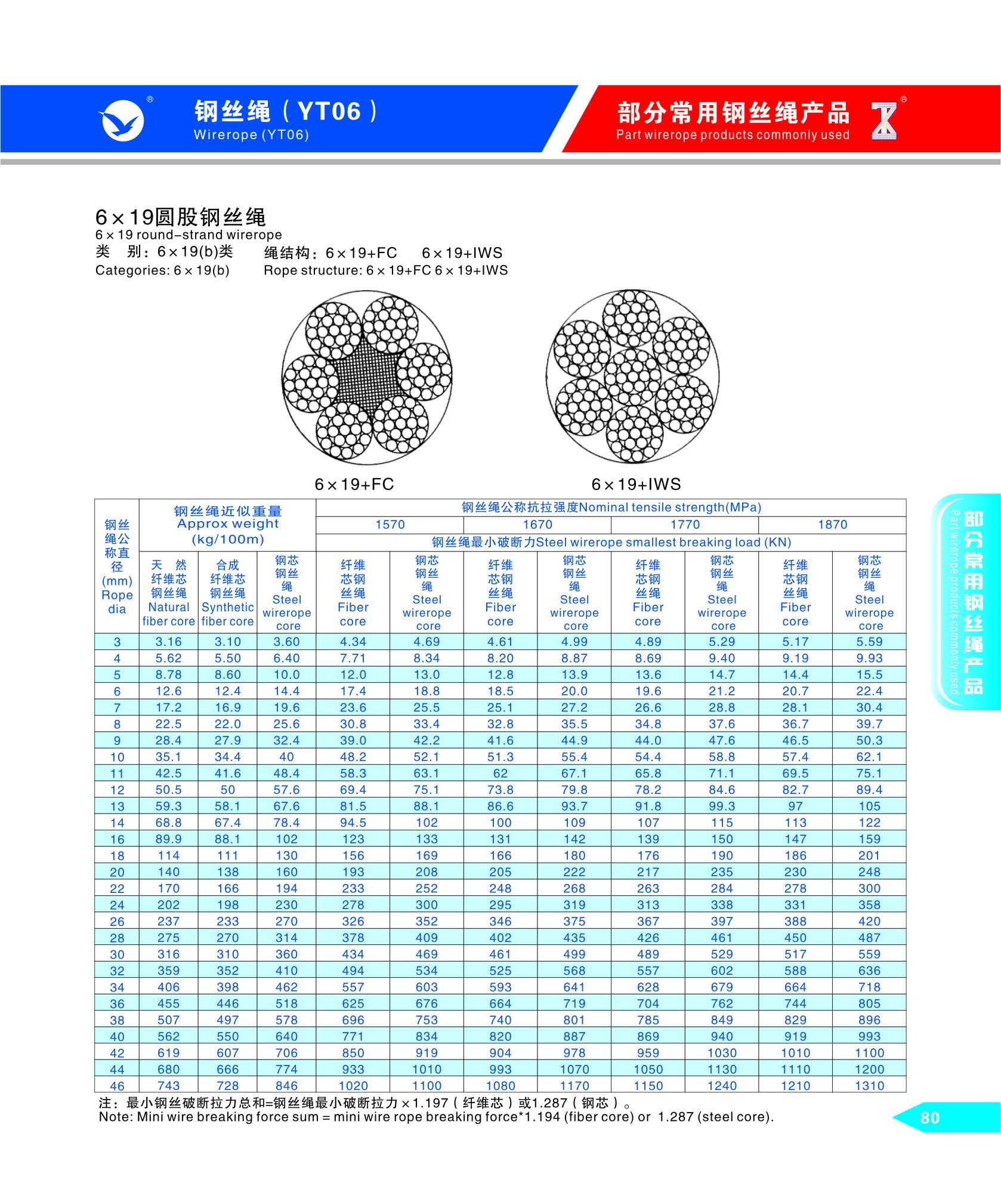 部分常用鋼絲繩產(chǎn)品